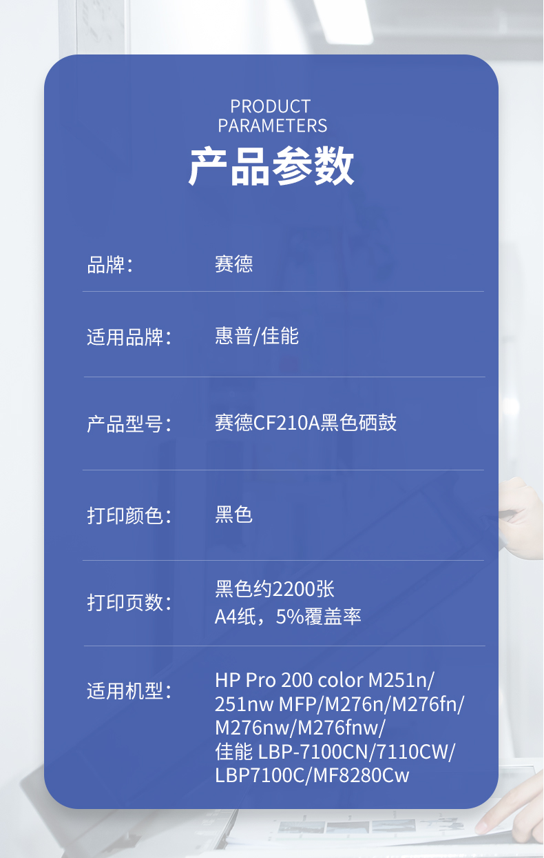 赛德 CF210A 打印量2200页 适用惠普M251n/251nw/M276n/M276nw 硒鼓 (计价单位:只) 黑色