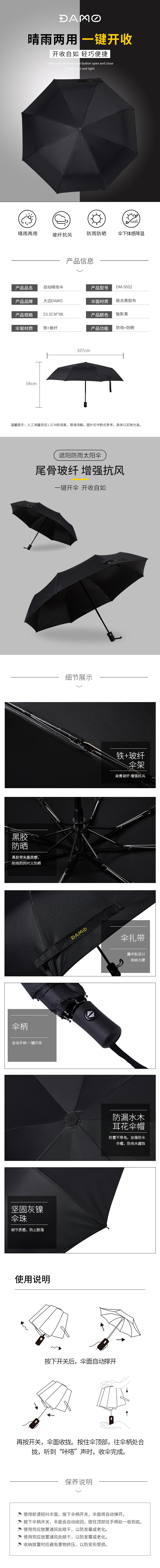大迈 DM-5002魅影双玻纤自动晴雨伞(单位:个) 曜石黑