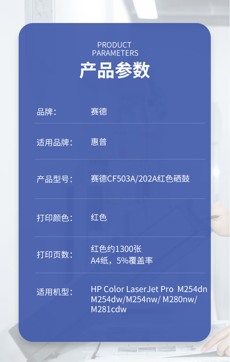 赛德 CF503A 打印量1300页 适用惠普M254dn/M254dw/M254nw/M280nw/M281fdn/fdw 硒鼓 (计价单位:只) 红色