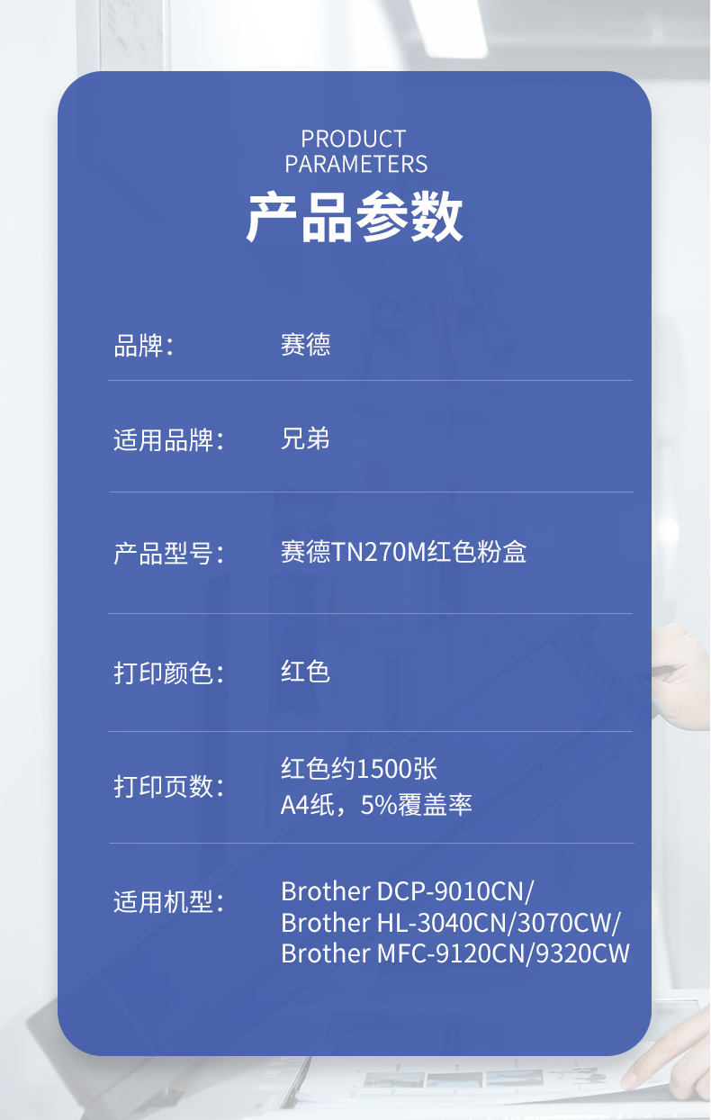 赛德 TN270M 打印量1500页 适用兄弟HL3040CN/9010CN/MFC9320CW/9120CN 粉盒 (计价单位:只) 红色