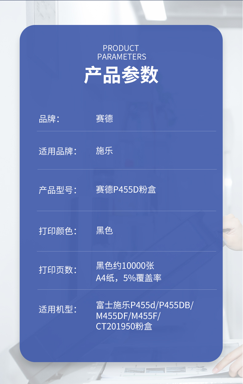 赛德 P455D 打印量10000页 适用富士施乐P455d/P455DB/M455DF/M455F/CT201950 粉盒 (计价单位:只) 黑色