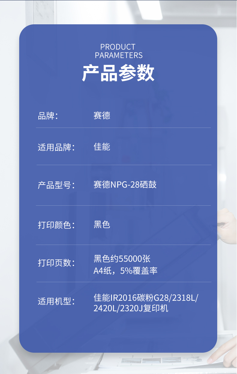 赛德 NPG-28 打印量55000页 适用佳能IR2016/2318L/2420L/2320J 硒鼓 (计价单位:只) 黑色
