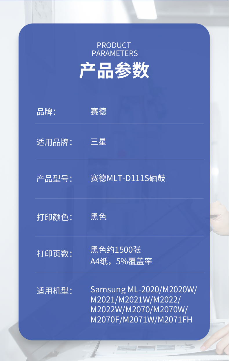 赛德 MLT-D111S 打印量1500页 适用三星SL-M2070/M2020/M2021/M2022/M2071FH 硒鼓 (计价单位:只) 黑色