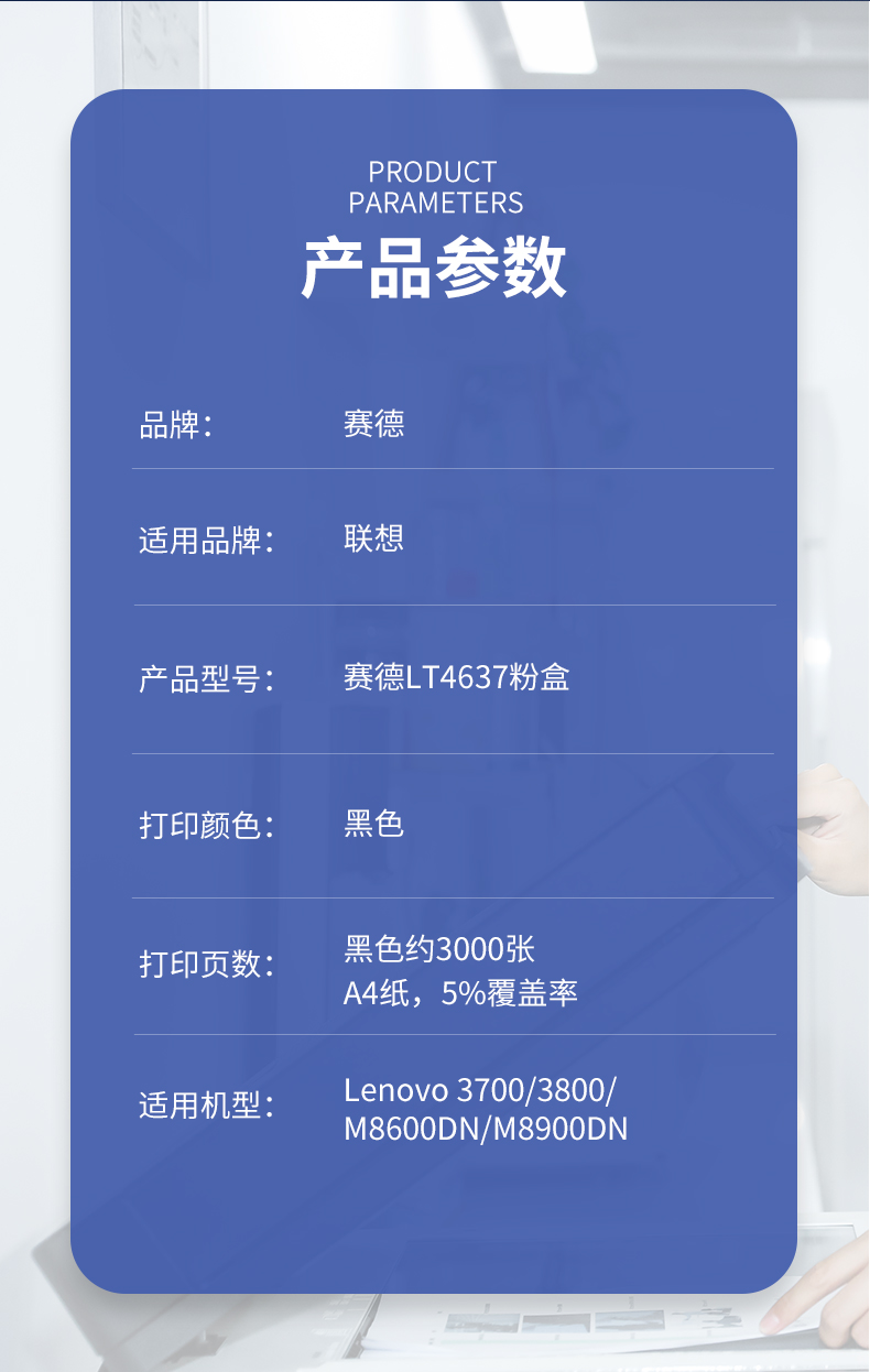 赛德 LT4637 打印量3000页 适用联想 3700/3800/M8600DN/M8900DN 粉盒 (计价单位:只) 黑色