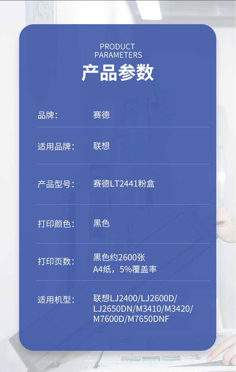 赛德 LT2441 打印量2600页 适用联想LJ2400/LJ2600D/LJ2650DN/M3410/M3420/M7600D/M7650DNF 粉盒 (计价单位:只) 黑色