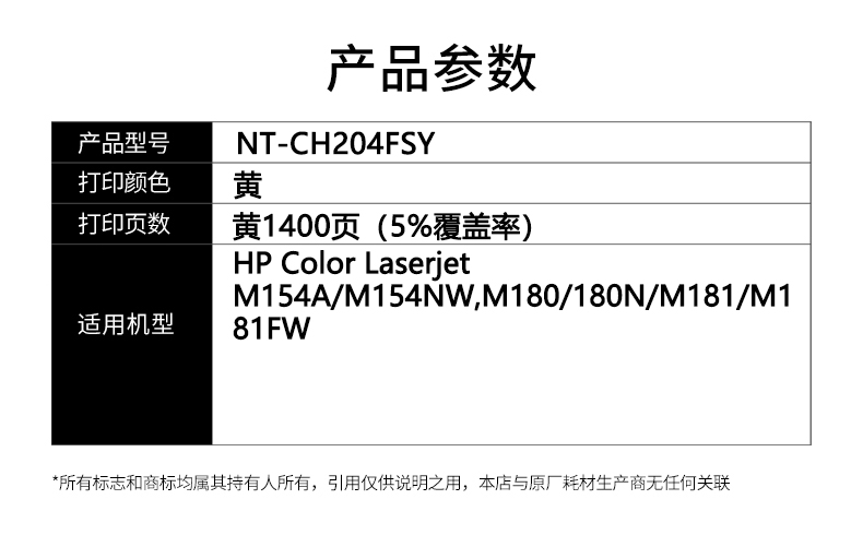 欣格 NT-CH204FSY 1400页 惠普M154A M154NW M180 180N 硒鼓 (计价单位:只) 黄色