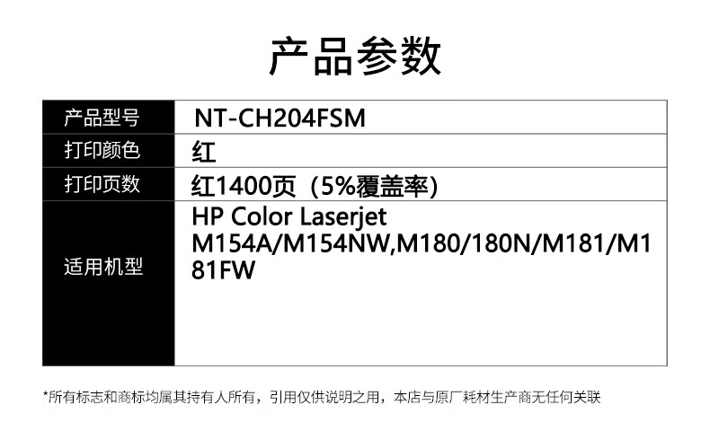 欣格 NT-CH204FSM 1400页 惠普M154A M154NW M180 180N 硒鼓 (计价单位:只) 红色