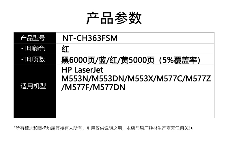 欣格 NT-CH363FSM 5000页 惠普 M553N M577C 硒鼓 (计价单位:只) 红色