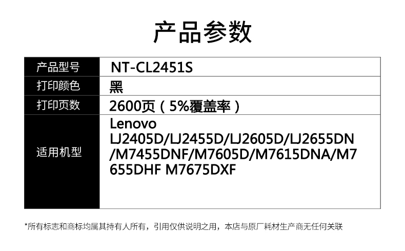 欣格 NT-CL2451S 2600页 适用联想 LJ2405D LJ2605D M7455DN M7675DXF 硒鼓 (计价单位:只) 黑色