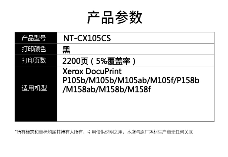 欣格 NT-CX105CS 2200页 适用Xerox P105b 碳粉盒 1.00 只/支 (计价单位:支) 黑色