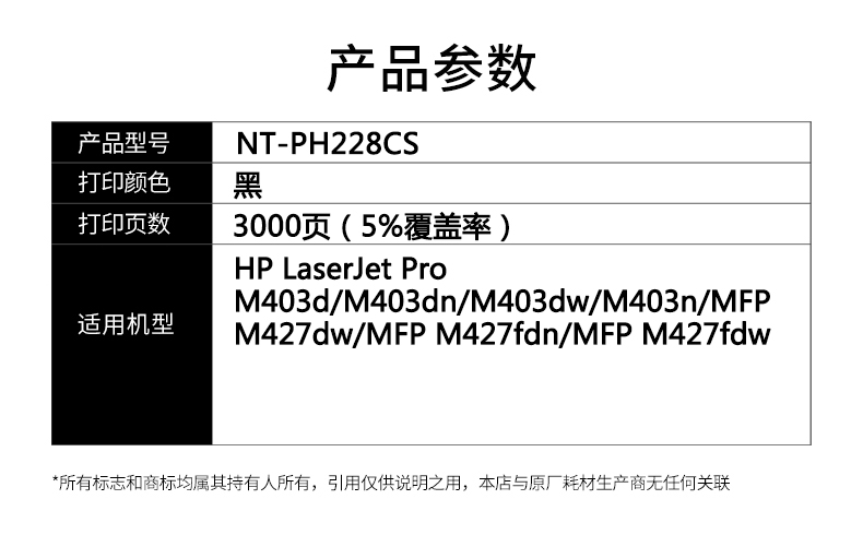 欣格 NT-PH228CS 金装版 打印量约3000页 激光碳粉盒 1.00 只/支 (计价单位:支) 黑色