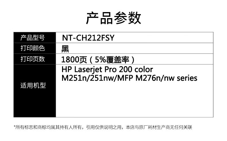 欣格 NT-CH212FSY 约1800页 适用惠普 M251n 激光碳粉盒 1.00 只/支 (计价单位:支) 黄色