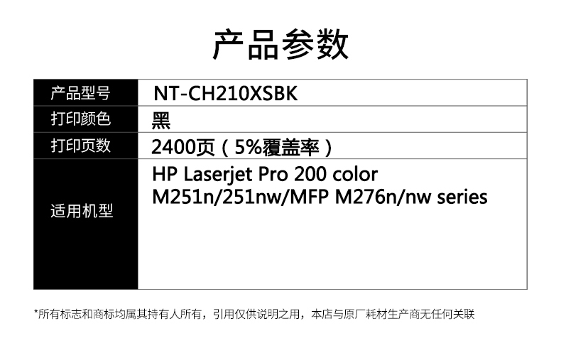 欣格 NT-CH210XS BK 打印量约2400页 激光碳粉盒 1.00 只/支 (计价单位:支) 黑色