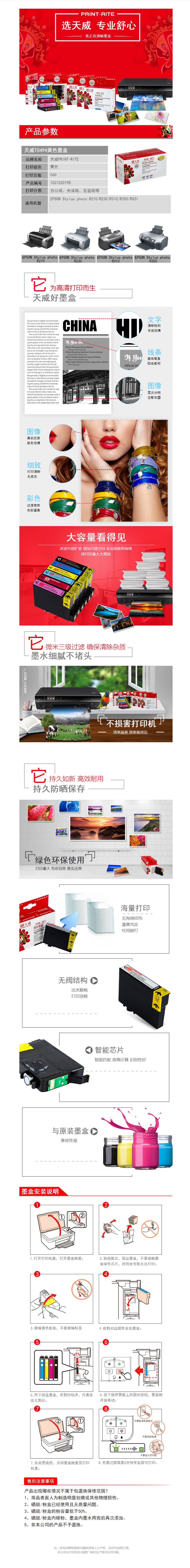 天威(PrintRite) 专业装 86T T0494 适用于EPSON T0494/R210/R230 YL 墨盒 1.00 盒/支 (计价单位:支) 黄色