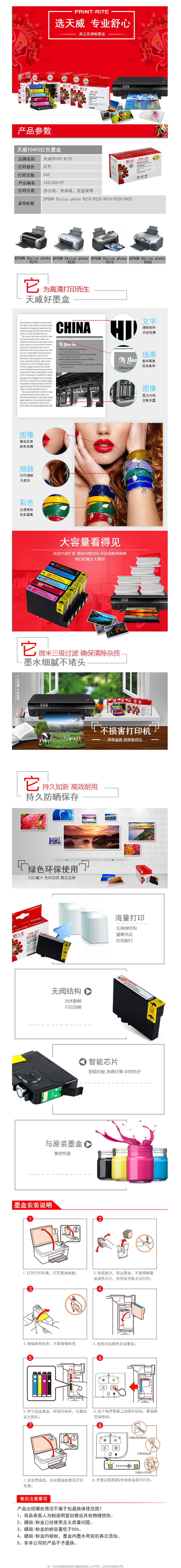天威(PrintRite) 专业装 86T T0493 适用于EPSON T0493/R210/R230 MG 墨盒 1.00 盒/支 (计价单位:支) 红色