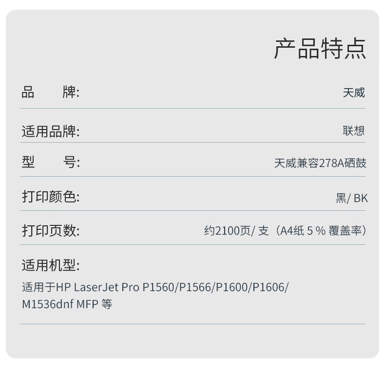 天威(PrintRite) 商用装 PR CE278AE 加粉乐 适用于CAN 328/278326(亚太) 加粉乐带芯片 打印量2100页 硒鼓 1.00 只/支 (计价单位:支) 黑色
