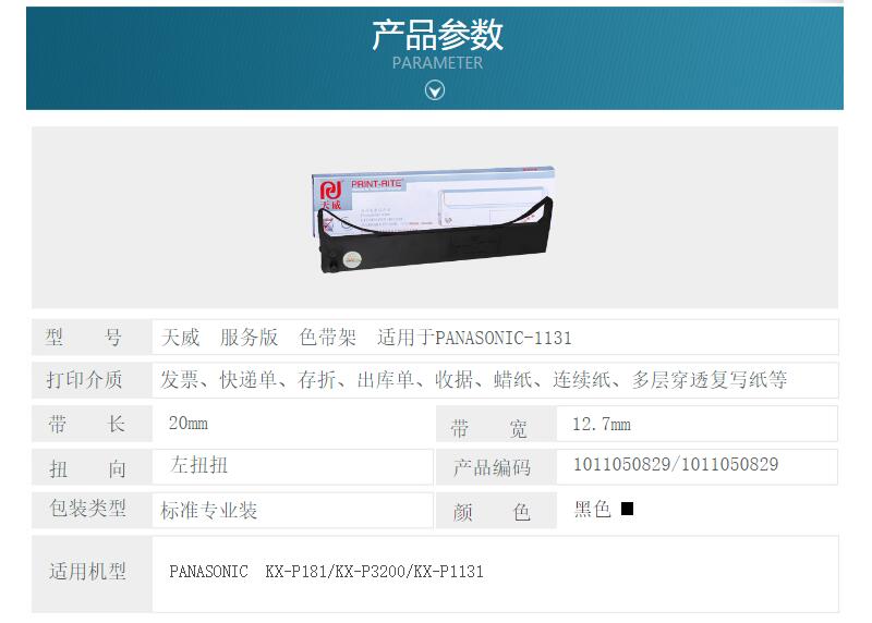 天威(PrintRite) KXP1131 适用于PANASONIC-1131-20m,12.7mm黑左扭架 色带 色带 1.00 盒/支 (计价单位:支) 黑色