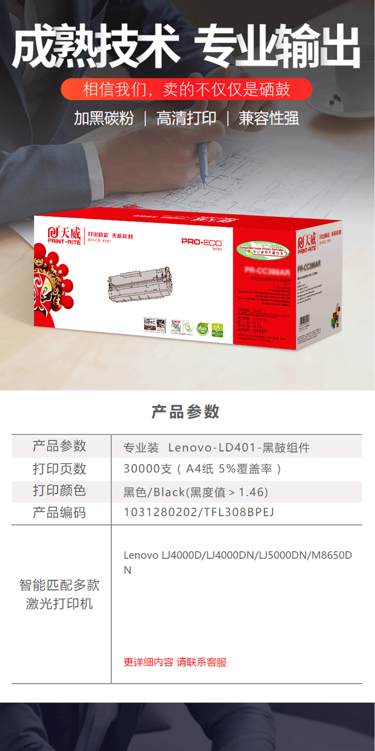 天威(PrintRite) LD401 打印量30000页 鼓组件 适用于联想 LJ4000D/M8650DN 硒鼓 (计价单位:只) 黑色