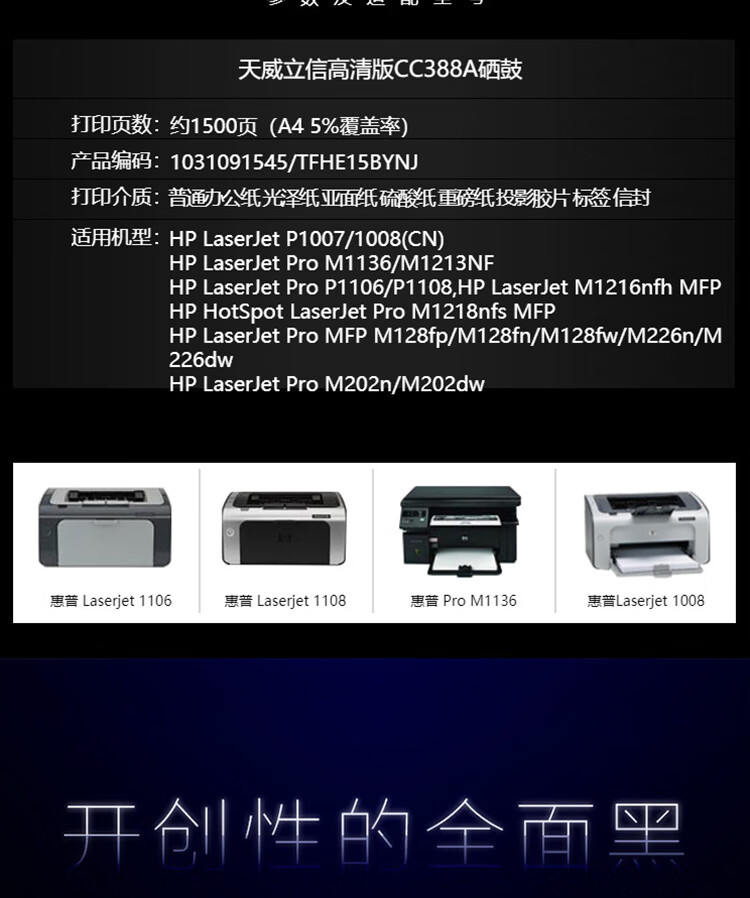 天威(PrintRite) PR-CC388A 标准装 打印量约1500页 硒鼓 1.00 只/支 (计价单位:支) 黑色
