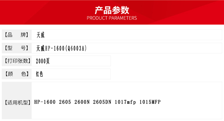 天威(PrintRite) PR-Q6003AR 专业装 适用于HP 1600 2600 硒鼓 1.00 只/支 (计价单位:支) 洋红色