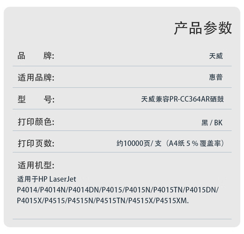 天威(PrintRite) CC364A 专业装 带芯片 打印量约10000页 硒鼓 1.00 只/支 (计价单位:支) 黑色
