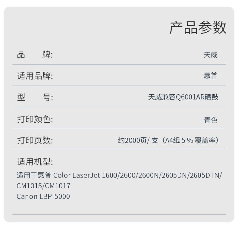 天威(PrintRite) Q6001A 专业装 适用于HP 16 硒鼓 (计价单位:只) 青色