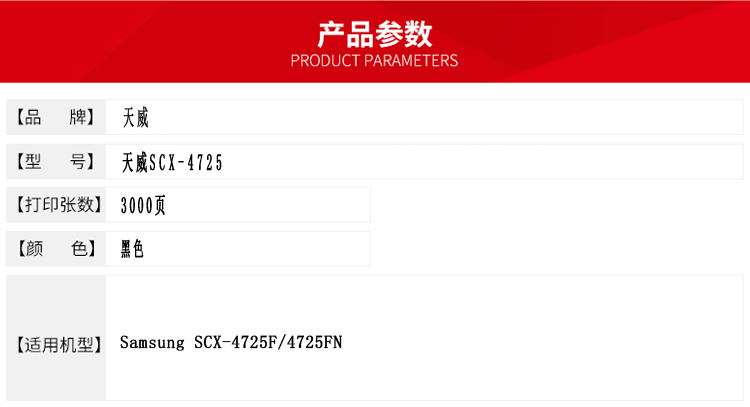 天威(PrintRite) SCX-4725 专业装 带芯片 打印量约3000页 硒鼓 1.00 只/支 (计价单位:支) 黑色