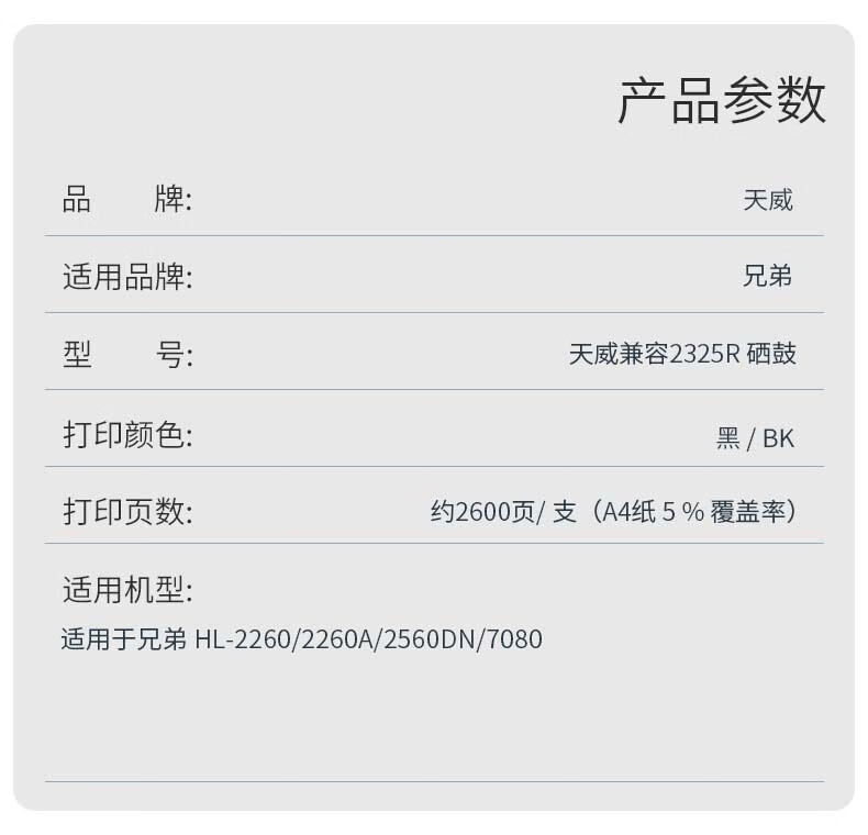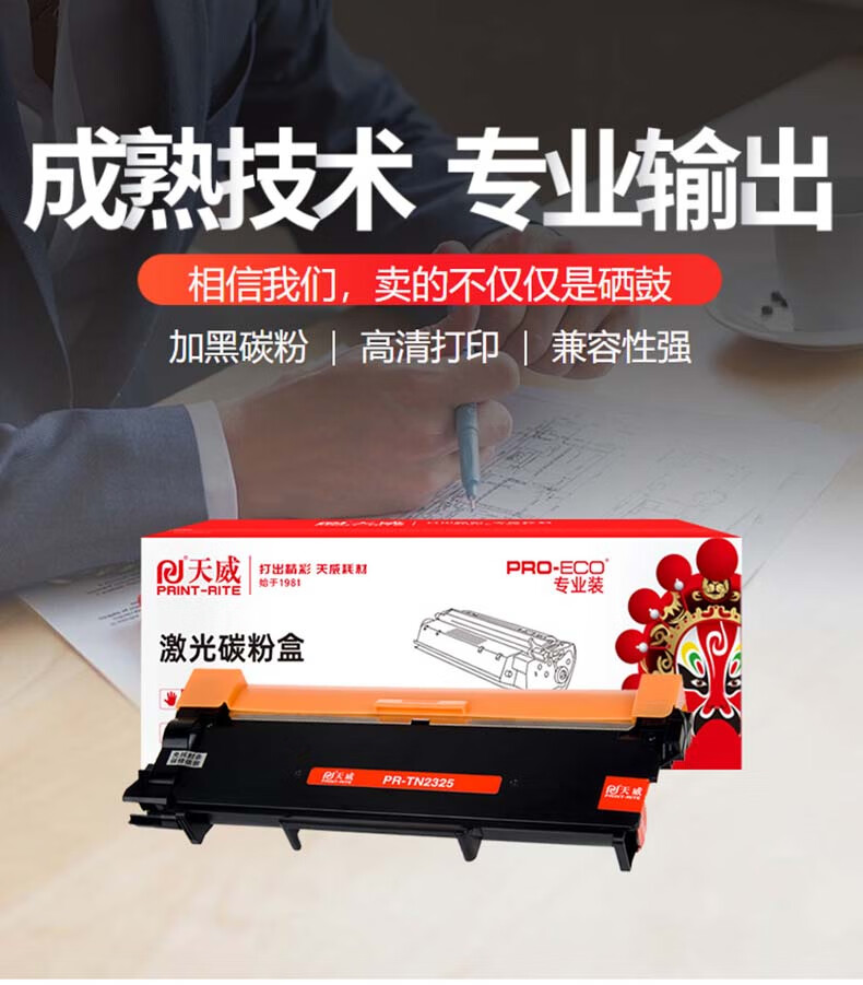 天威(PrintRite) TN2325 专业装 高容量 适用兄弟2260D 2560等 粉盒 1.00 只/支 (计价单位:支) 黑色