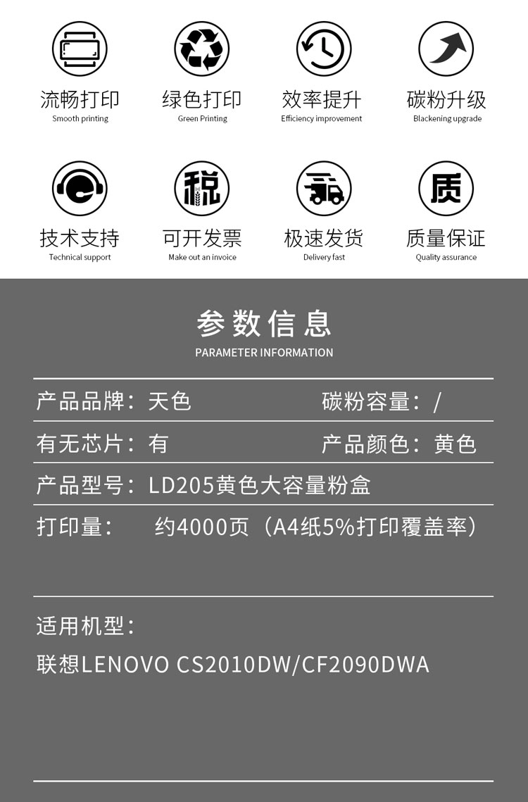 天色 LD205 4000页 1支装 适用联想CS2010DW、CF2090DWA 硒鼓 1.00 只/支 (计价单位:支) 黄色