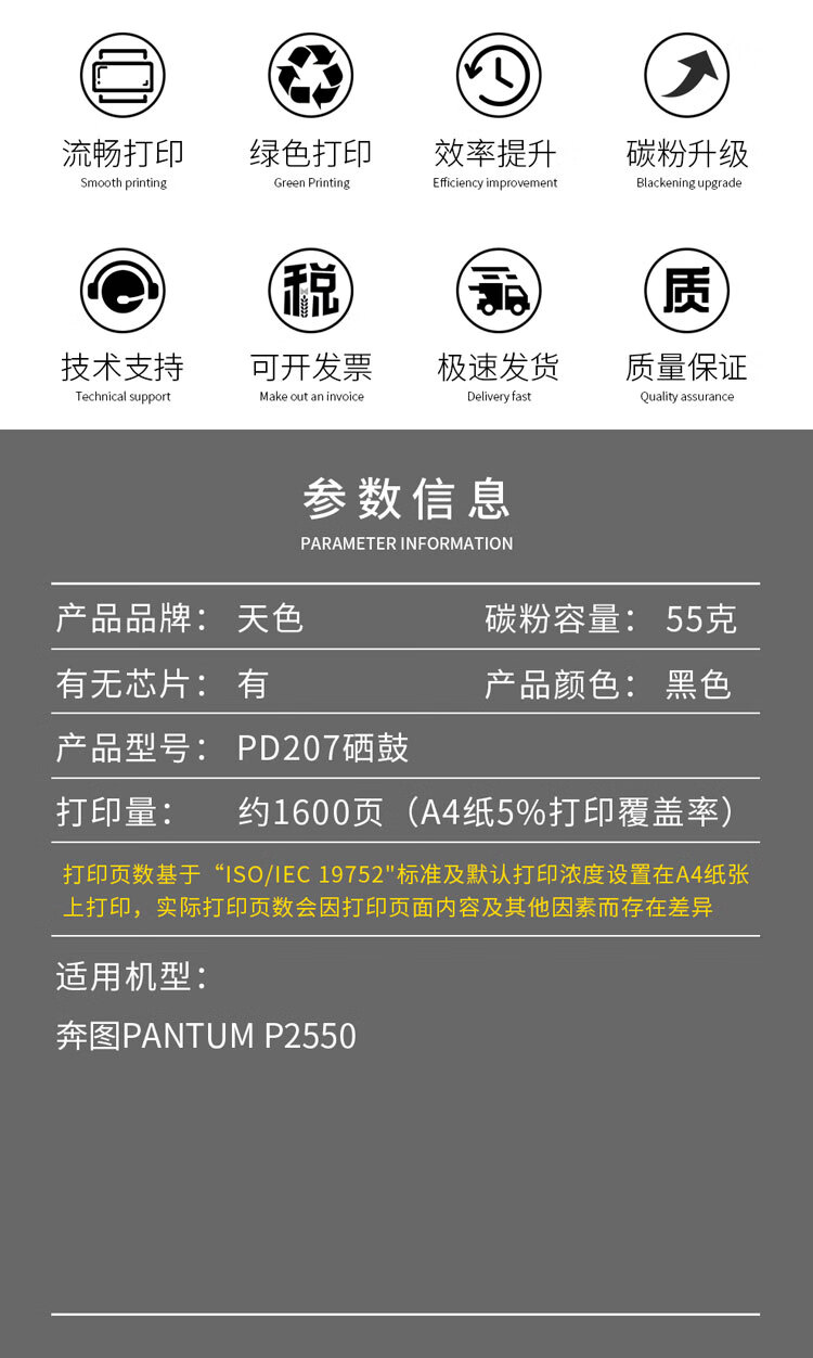 天色 PD-207 1600页 1支装 适用奔图P2550 硒鼓 1.00 只/支 (计价单位:支) 黑色
