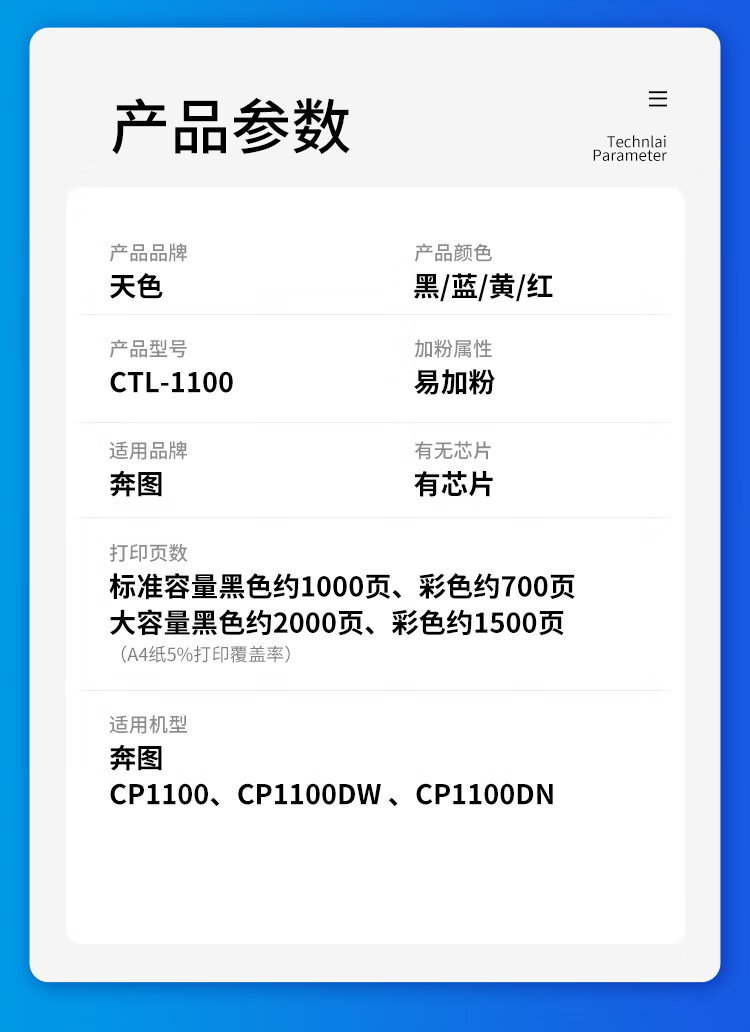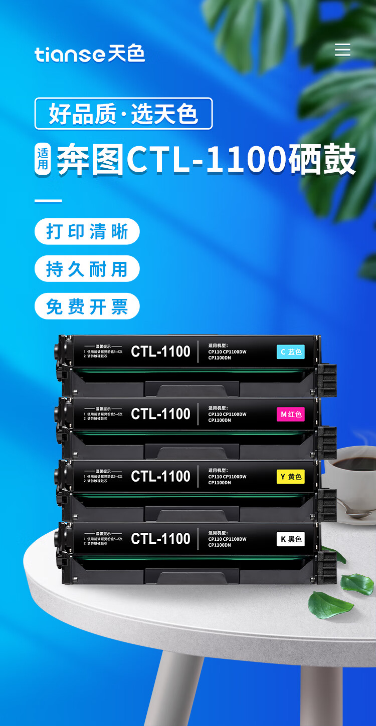 天色 CTL-1100 1500页 1支装 适用奔图CP1100、CP1100DW 、CP1100DN 硒鼓 1.00 只/支 (计价单位:支) 黄色 黄色
