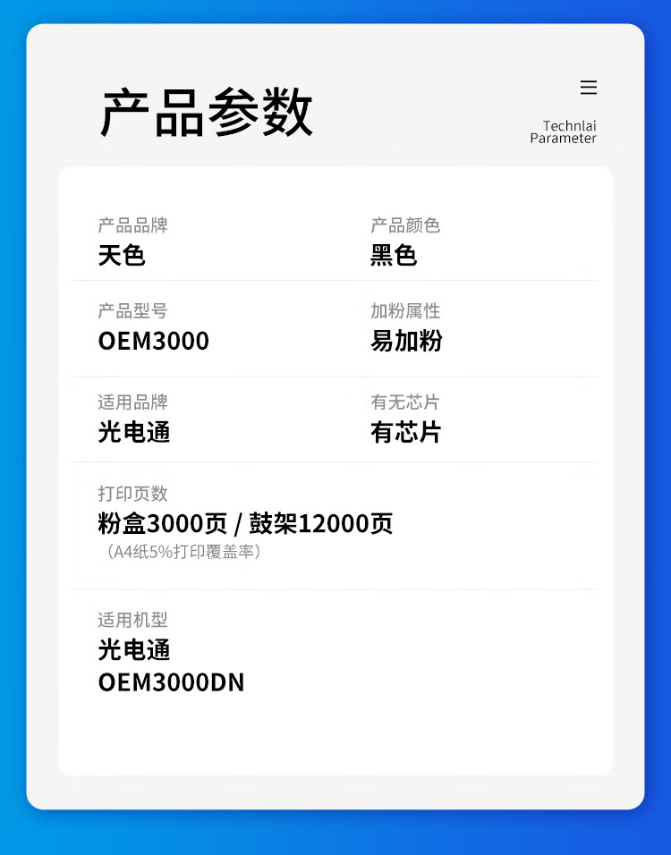 天色 OEM3000 12000页 1支装 适用光电通OEM3000DN 硒鼓 1.00 只/支 (计价单位:支) 黑色