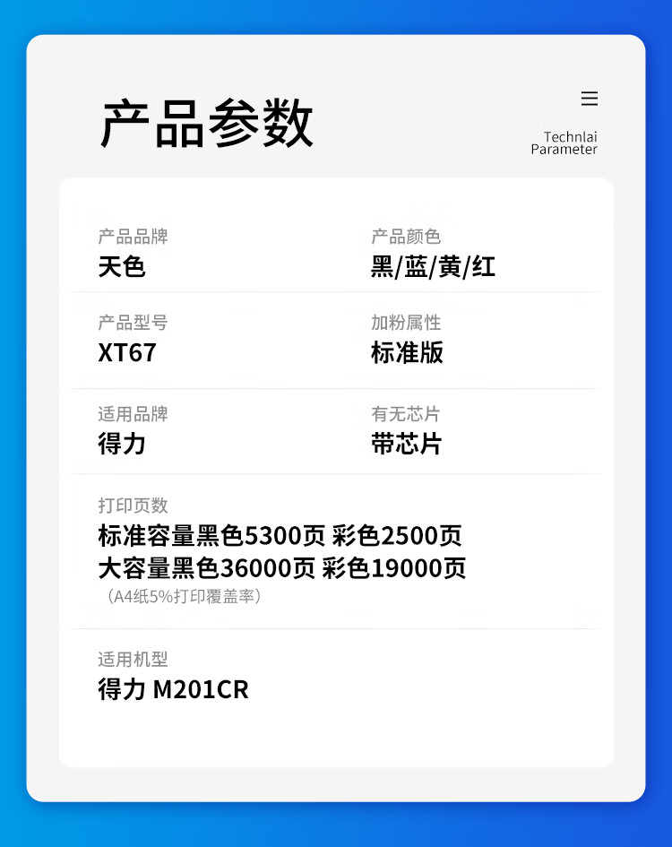 天色 XT67 36000页 1支装 适用得力M201CR、M301CR 硒鼓 1.00 只/支 (计价单位:支) 黑色 黑色