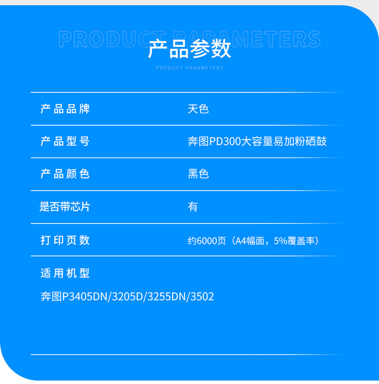 天色 PD-300 6000页 1支装 适用奔图P3000D、P3050、P3100、P3200、P3205D、P3255DN等 硒鼓 1.00 只/支 (计价单位:支) 黑色