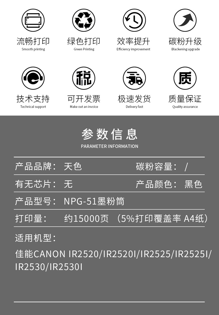 天色 NPG-51 打印量14600页 适用于佳能2525i等 粉盒 1.00 只/个 (计价单位:个) 黑色