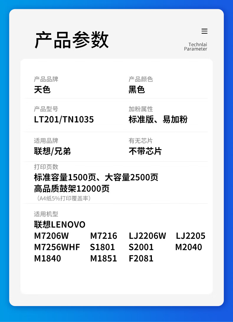 天色 TN1035 7000页 墨粉盒1支+碳粉2支套装 (计价单位:组) 黑色 黑色