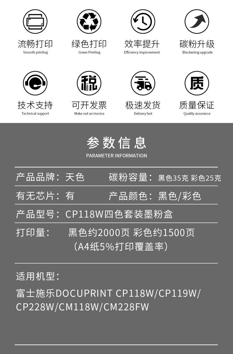 天色 CP118W/115W 兼容施乐打印机 四色套装 粉盒 4.00 只/组 (计价单位:组) 四色