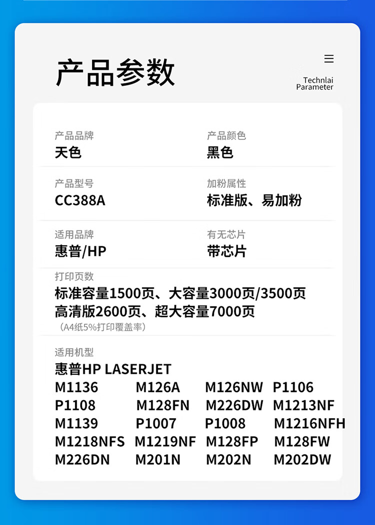 天色 CC388A 1个硒鼓+2瓶碳粉套装(计价单位:支) 黑色 黑色