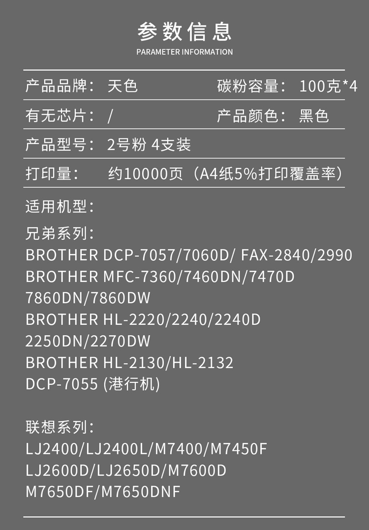 天色 TN2215 瓶装 100g/瓶 适用兄弟7055 7057 碳粉 4.00 瓶/组 (计价单位:组) 黑色