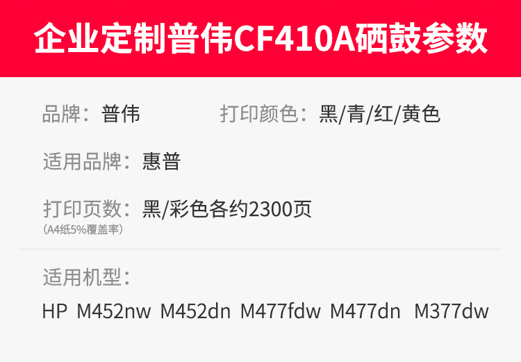普伟 CF411(支)(青色2300页)适用于HP M452nw、M452dn、M477fdw、M477dn、M377dw 硒鼓 1.00 只/支 (计价单位:支) 青色
