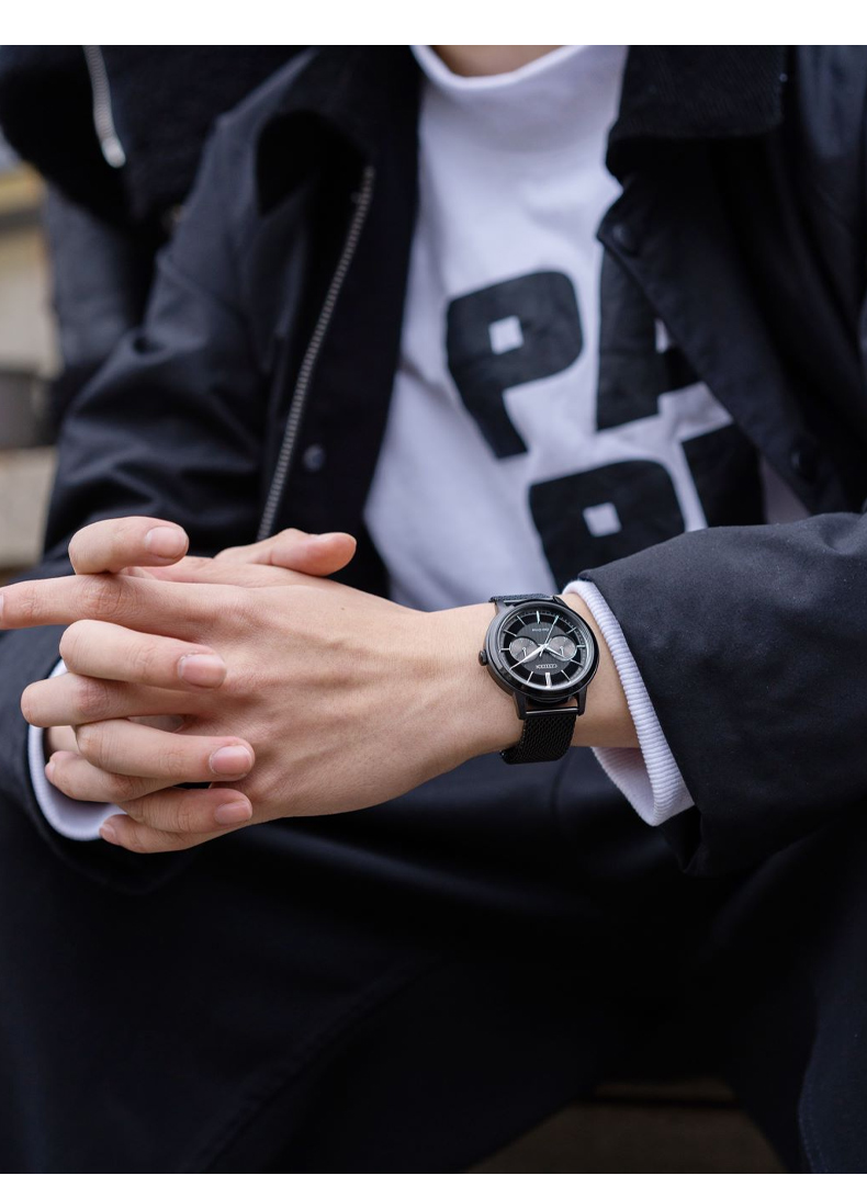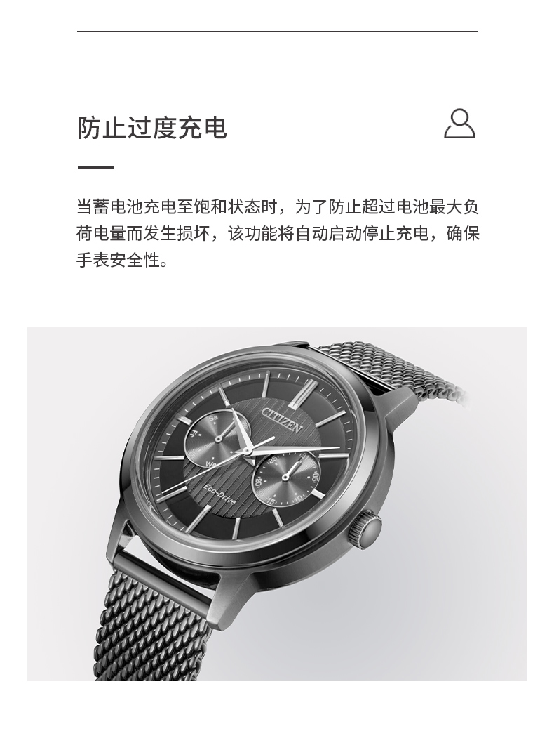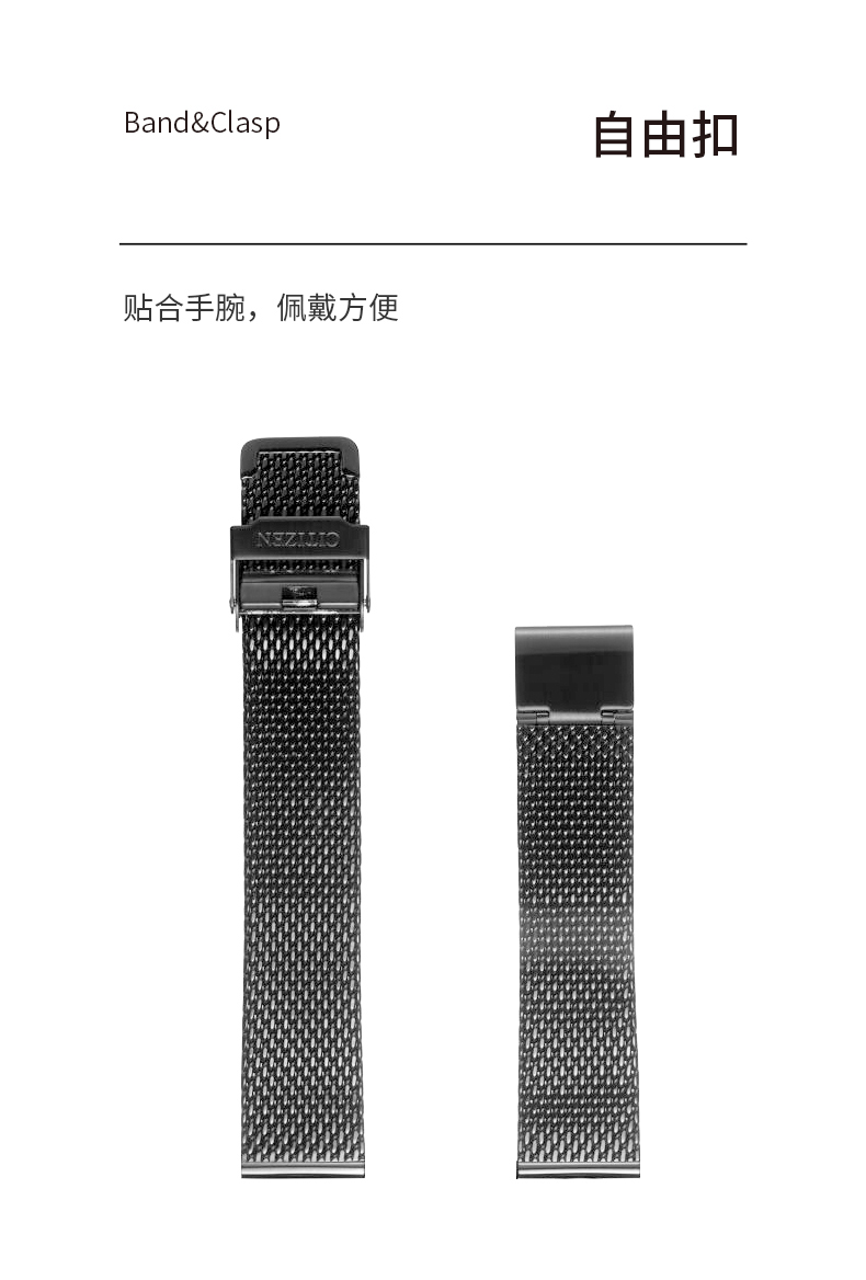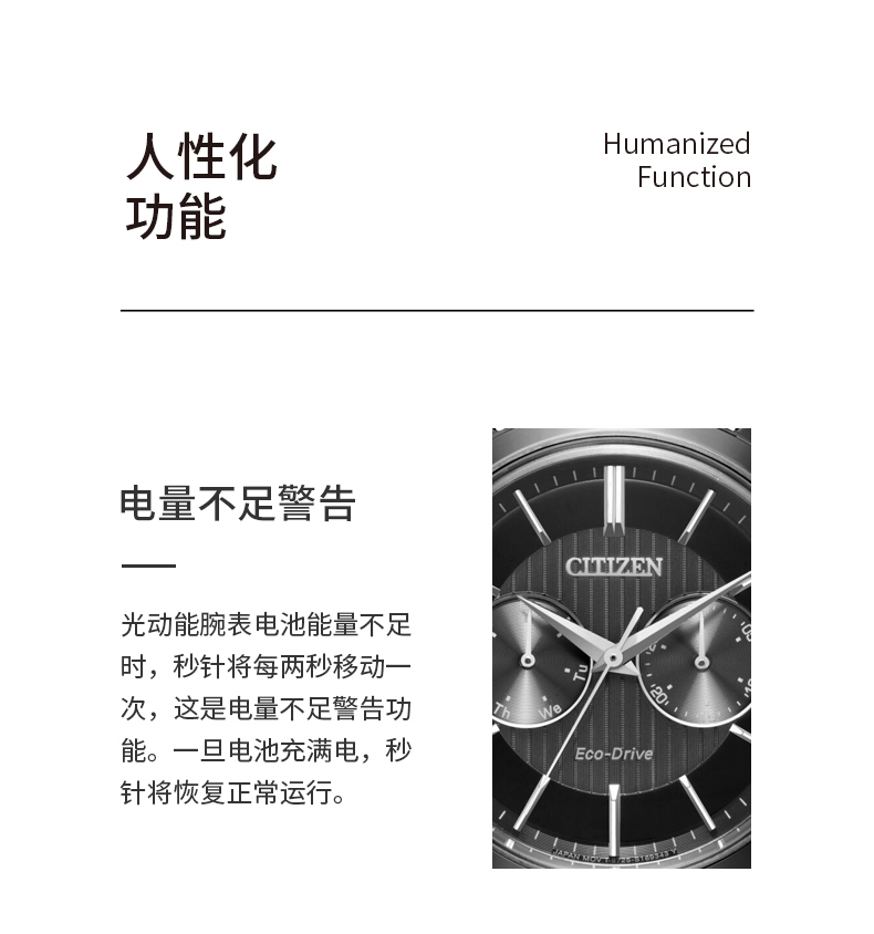 Citizen西铁城 光动能手表日星双显时尚商务黑盘不锈钢覆BIP表带男表BU4034-82E 黑色