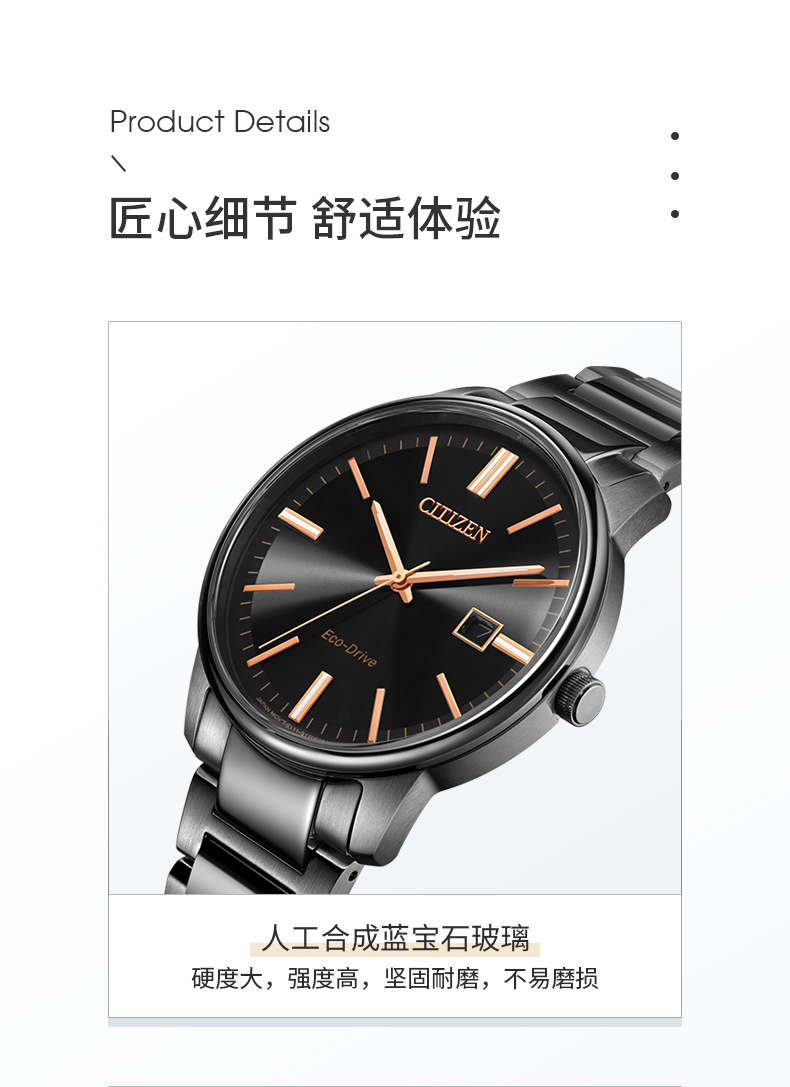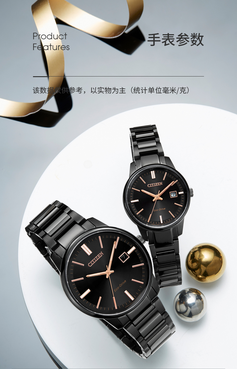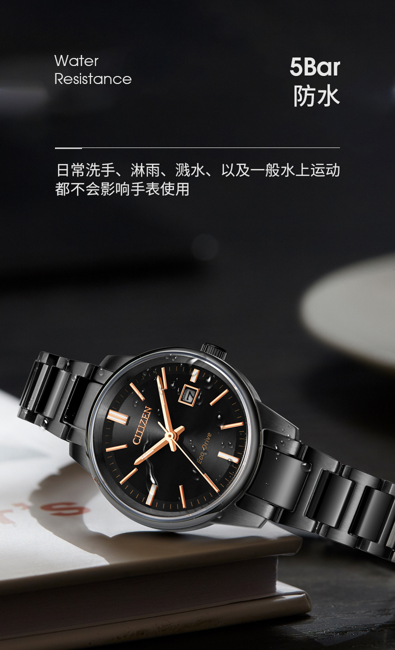 Citizen西铁城 光动能手表日期显示简约轻奢情侣对表 女表EW2597-86E 黑色