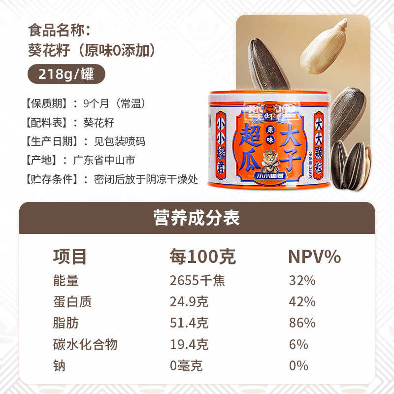 小小罐君 葵瓜子优质产地 内蒙大瓜子 原味超大瓜子 21g精美铁罐装 礼盒装 单罐