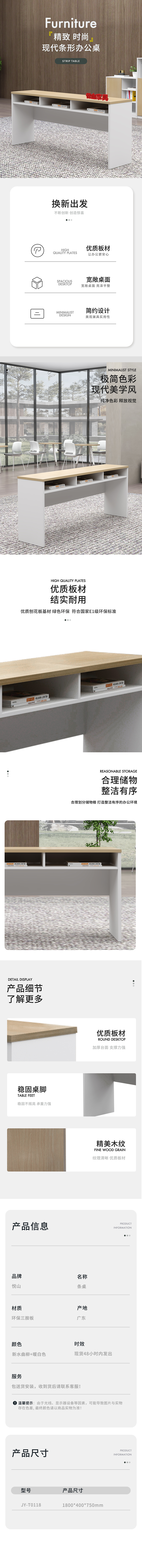 悦山 简约办公桌条桌培训桌 1800*400*750mm*1张 新水曲柳+暖白色