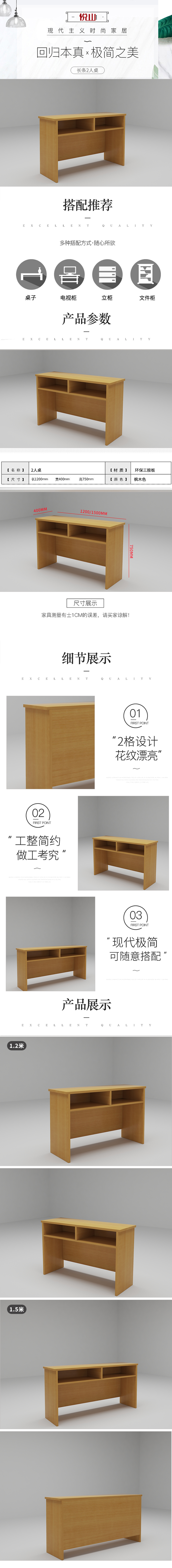 悦山 组合家具简约培训桌会议桌长条桌 枫木色 1500*400*750mm*1张