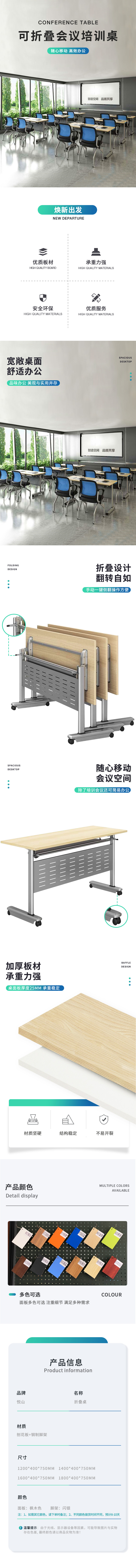悦山培训翻转桌办公折叠会议长条桌 枫木色+闪银色 1200*400*750mm*1张