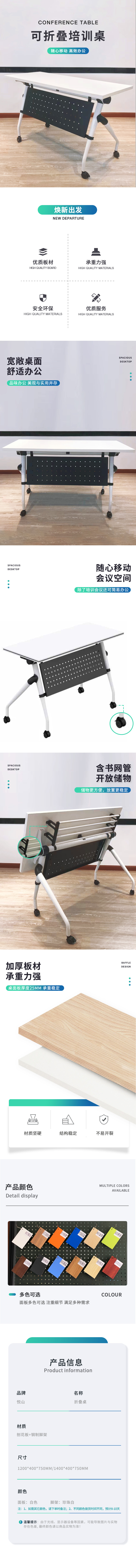 悦山折叠培训桌可组合拼接条桌 白色+黑色 1200*400*750mm*1张