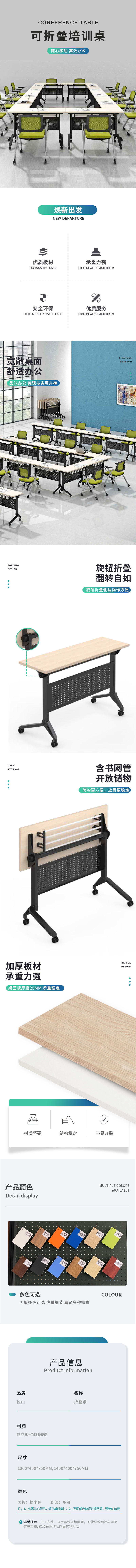 悦山折叠条桌钢架学生桌培训会议桌 枫木色+哑黑 1200*400*750mm*1张