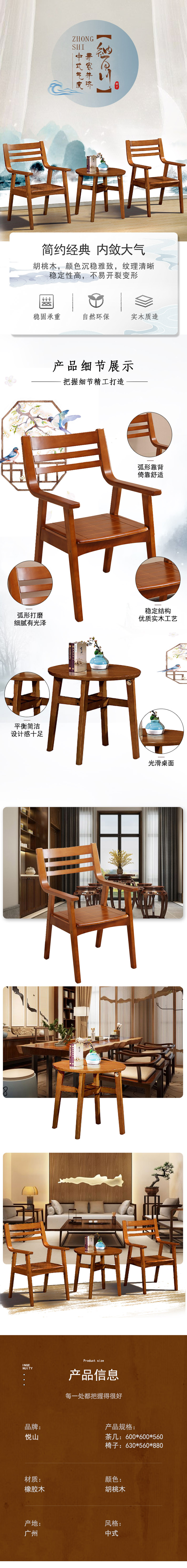 悦山 餐椅木椅子简约靠背椅皮坐垫餐椅长椅办公椅 1桌2椅*1套 胡桃色