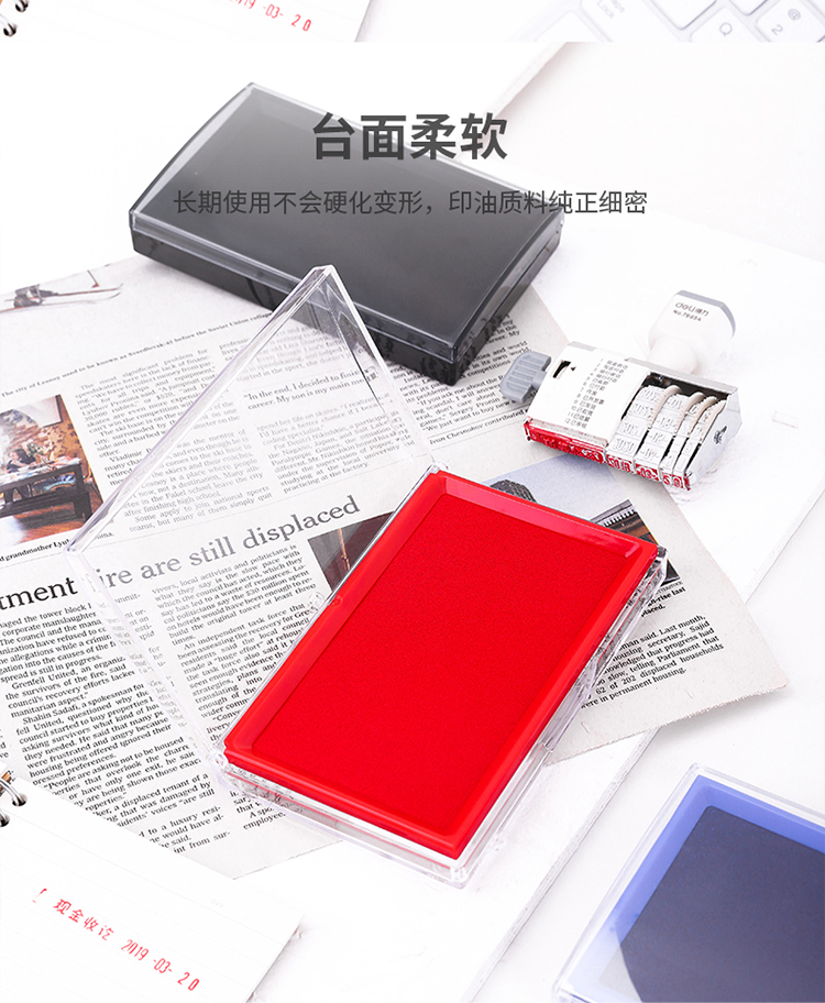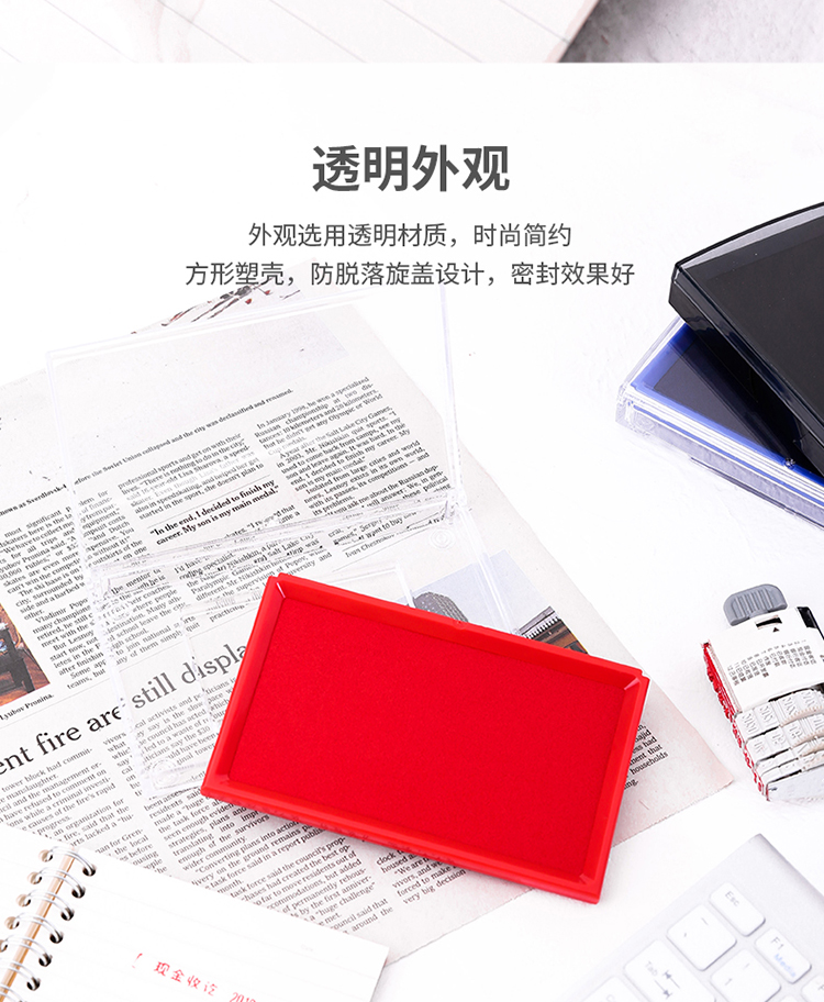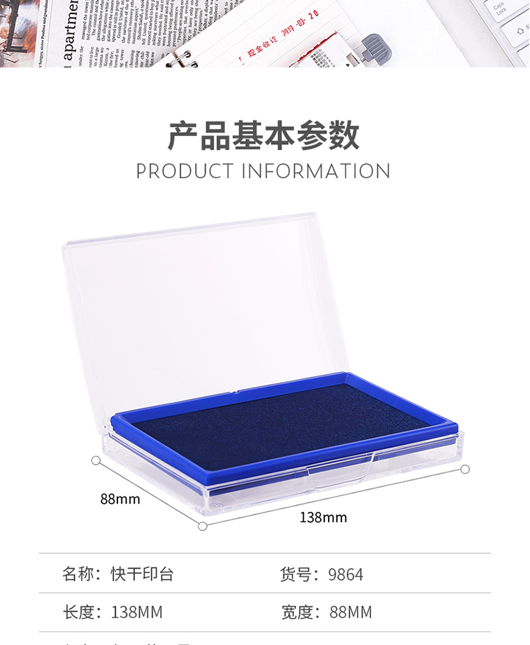 得力(deli)138*88mm透明外壳方形快干印台印泥 办公用品 黑色9864 单位:个 黑色